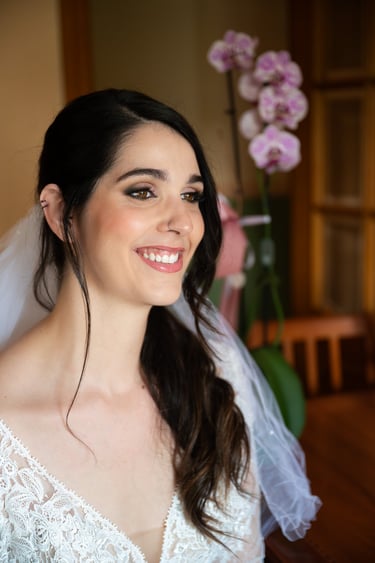 Trabajo cada novia de forma personalizada, teniendo en cuenta tu estilo, tu vestido, la iluminación del evento y el tipo de piel, para lograr un maquillaje armonioso, duradero y atemporal, que se vea impecable tanto en persona como en fotografías.